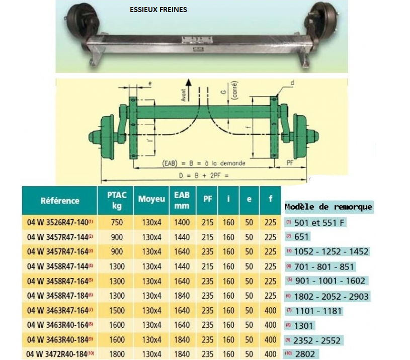 Rechange essieu 750/950/1350 kg