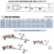 Remorque Mecanorem MTX NON FREINEE . BATEAU DE 360 A 500 KG