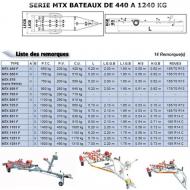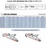 Remorque Mecanorem MTX FREINEE. BATEAU DE 1100 A 2800 KG - MTX 2622F - PTC 3200kg - C.U 2470 kg